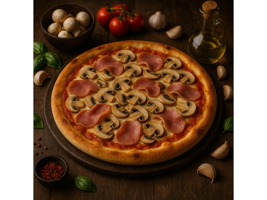 tomat, oregano,šunka-prosciutto, šampióny, syr